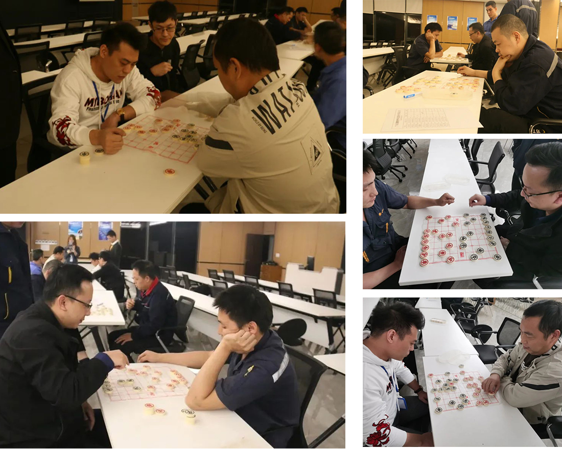 象棋比賽在集團總部大樓六樓會議室進行,現(xiàn)場氣氛緊張而又激烈。參賽隊員都凝神聚氣,仿佛所有力氣都付諸在了每一顆棋子上。雙方對弈激烈,你一步我一步僵持許久都難分勝負。