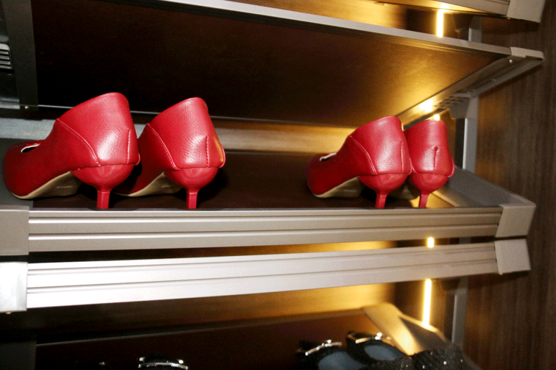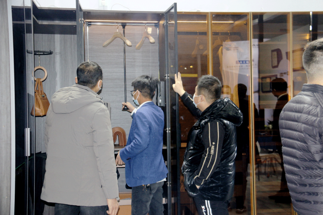 在衣柜功能五金區(qū)域,星徽精密展出了星悅衣柜功能五金系列,沉穩(wěn)高貴的星巴咖與高級棕完美搭配,靈動的設(shè)計、精細的做工給展會觀眾帶來了高級感十足的現(xiàn)場體驗。