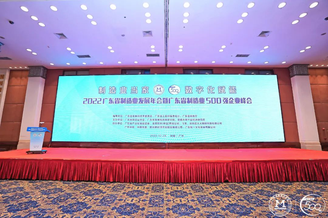 12月28日,2022廣東省制造業(yè)發(fā)展年會(huì)暨廣東省制造業(yè)500強(qiáng)企業(yè)峰會(huì)在廣州東方賓館舉行,此次大會(huì)由廣東省制造業(yè)協(xié)會(huì)/廣東省產(chǎn)業(yè)發(fā)展促進(jìn)會(huì)主辦,500強(qiáng)企業(yè)代表人士和省商務(wù)廳、發(fā)改局、暨南大學(xué)等相關(guān)單位領(lǐng)導(dǎo)濟(jì)濟(jì)一堂,共同參加了此次盛會(huì)。